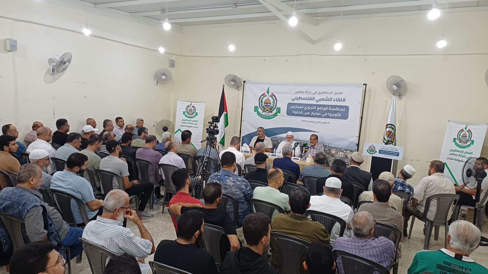 نظم مكتب العمل الجماهيري في حركة حماس، يوم السبت 8 تشرين الثاني 2025، لقاءً شعبياً موسعاً في مخيم عين الحلوة لمناقشة الوضع التربوي في مدارس وكالة غوث وتشغيل اللاجئين الفلسطينيين "الأونروا"، بحضور ممثلين عن الفصائل الفلسطينية، اللجان الشعبية، الحراكات الشبابية، المؤسسات الأهلية، وعدد من الخبراء والمختصين في الشؤون التعليمية.