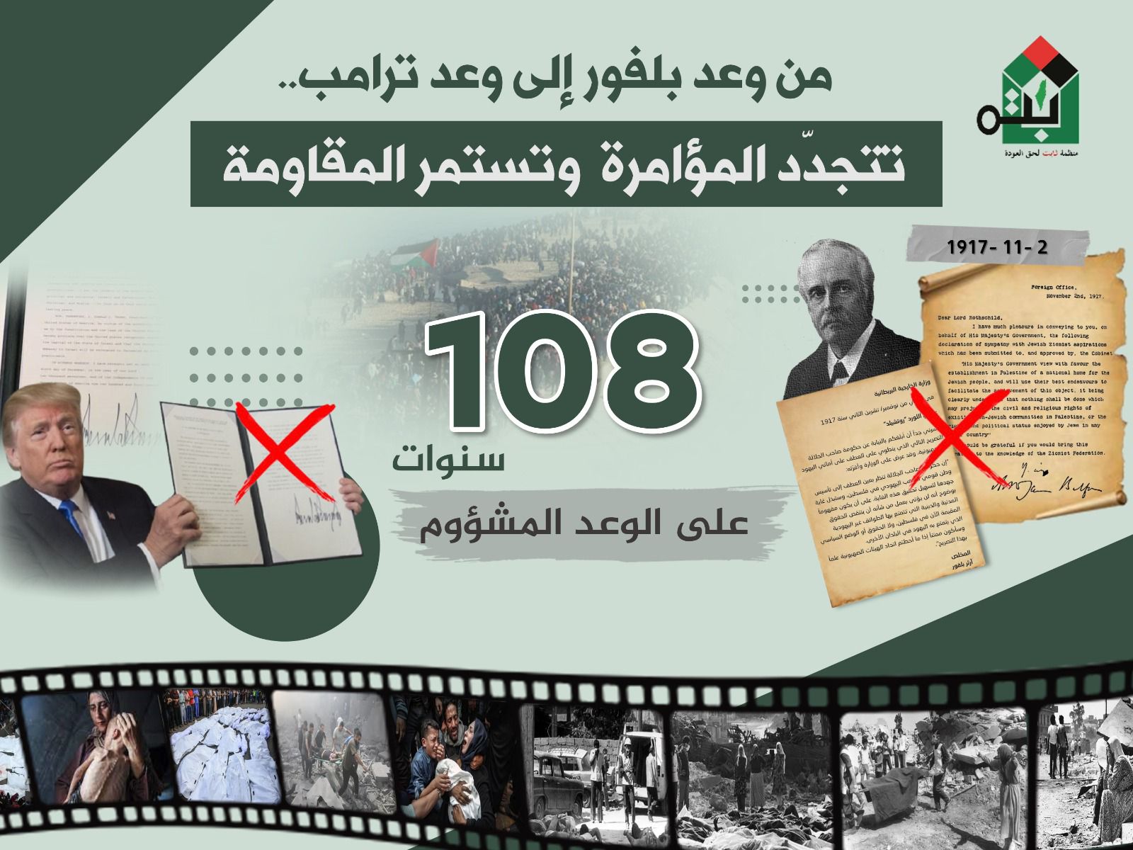 تُجسّد عملياً مضمون وعد بلفور، الذي شرّع القتل والتهجير وسلب الحقوق الفلسطينية.