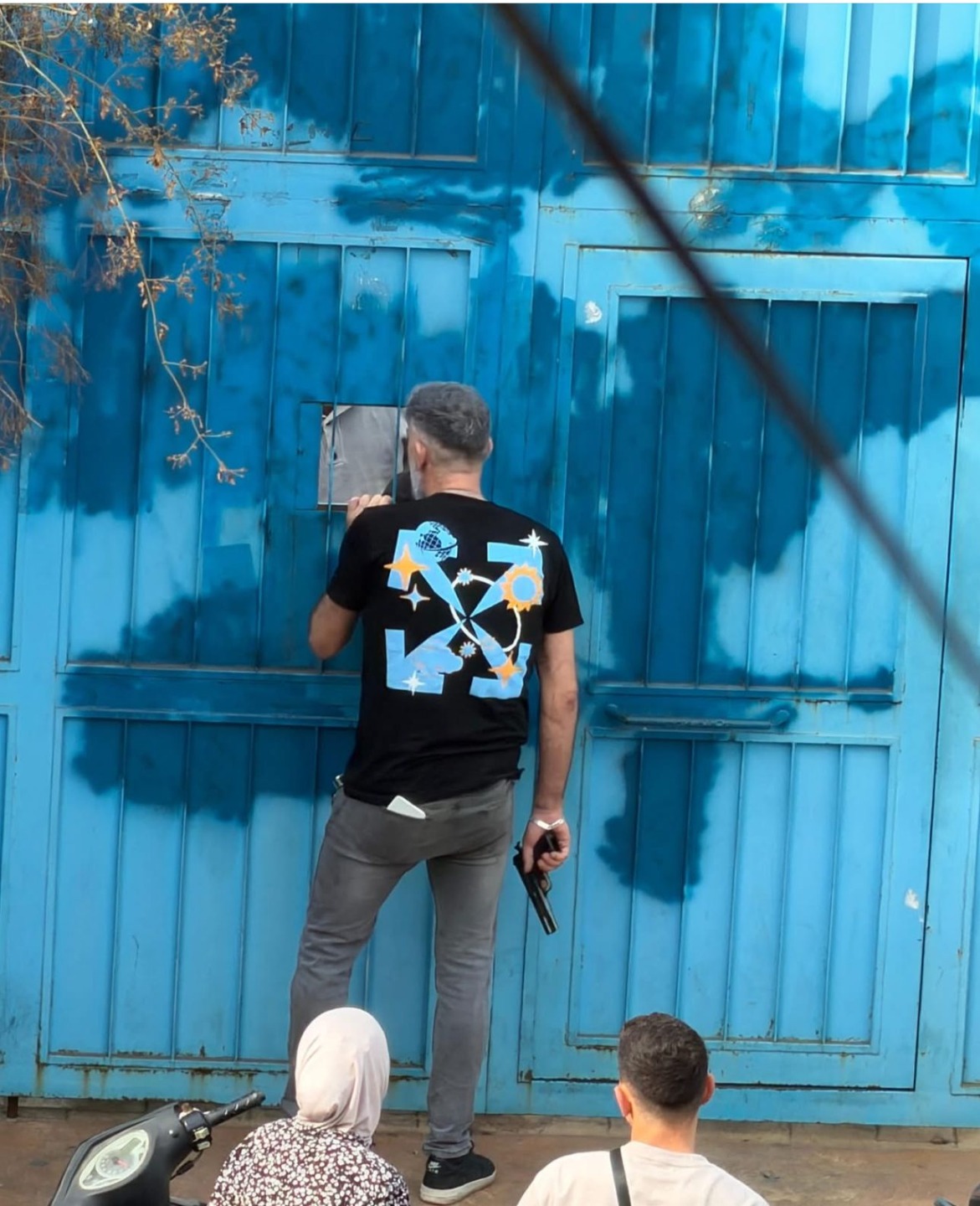 حاول دخول المدرسة بطريقة هستيرية، ما دفع الأهالي واللاجئين الفلسطينيين إلى